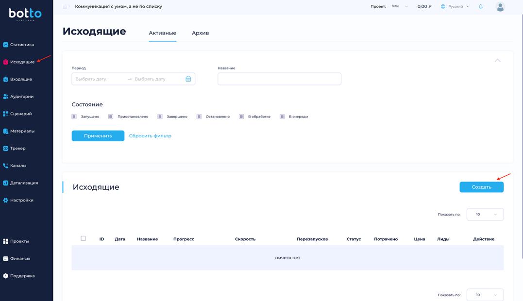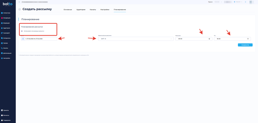 Создать рассылку - Botto Platform - платформа автоматизации маркетинга